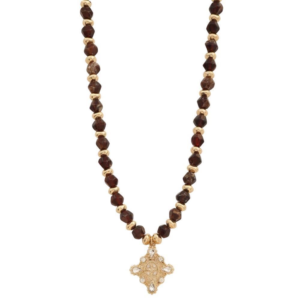 BEAD STONE PAVE FLORAL PENDANT NECKLACE