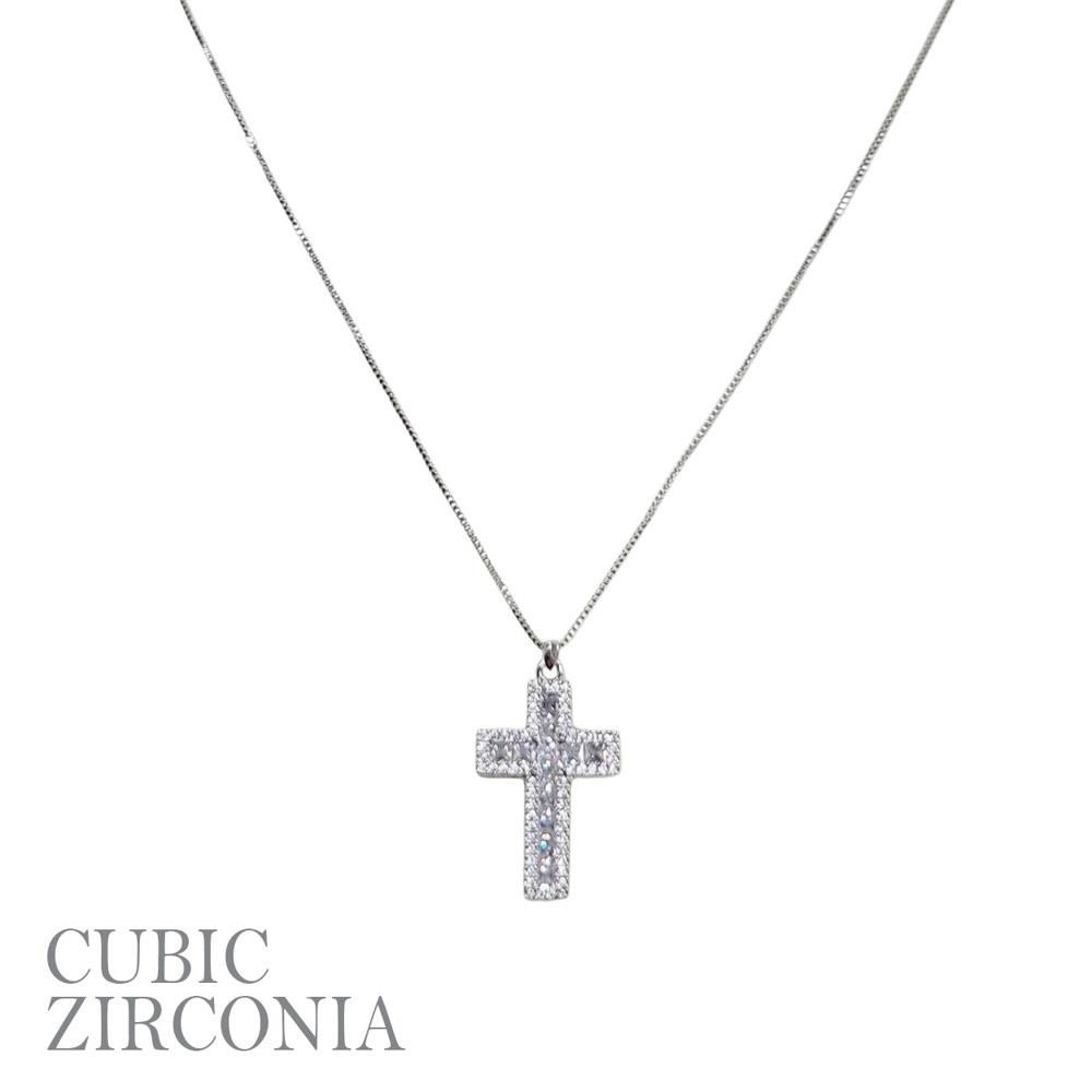 CUBIC ZIRCONIA STONE CROSS PENDANT NECKLACE