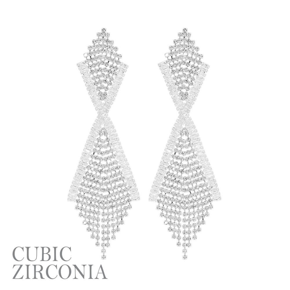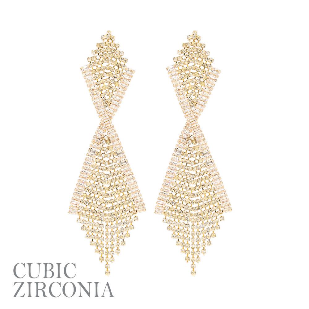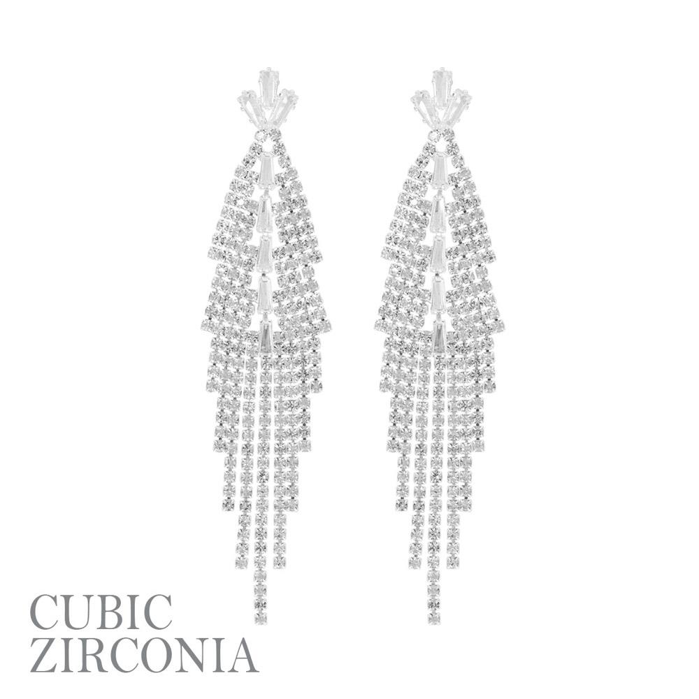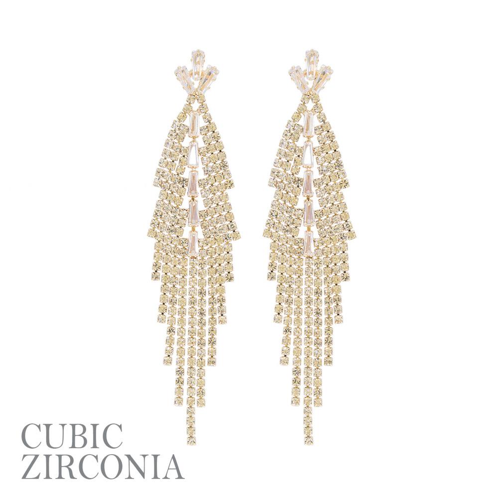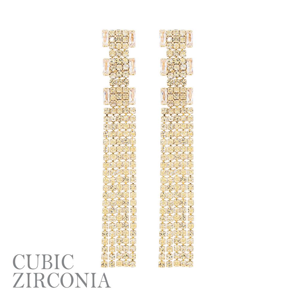 CUBIC ZIRCONIA RHINESTONE TASSEL EARRING
