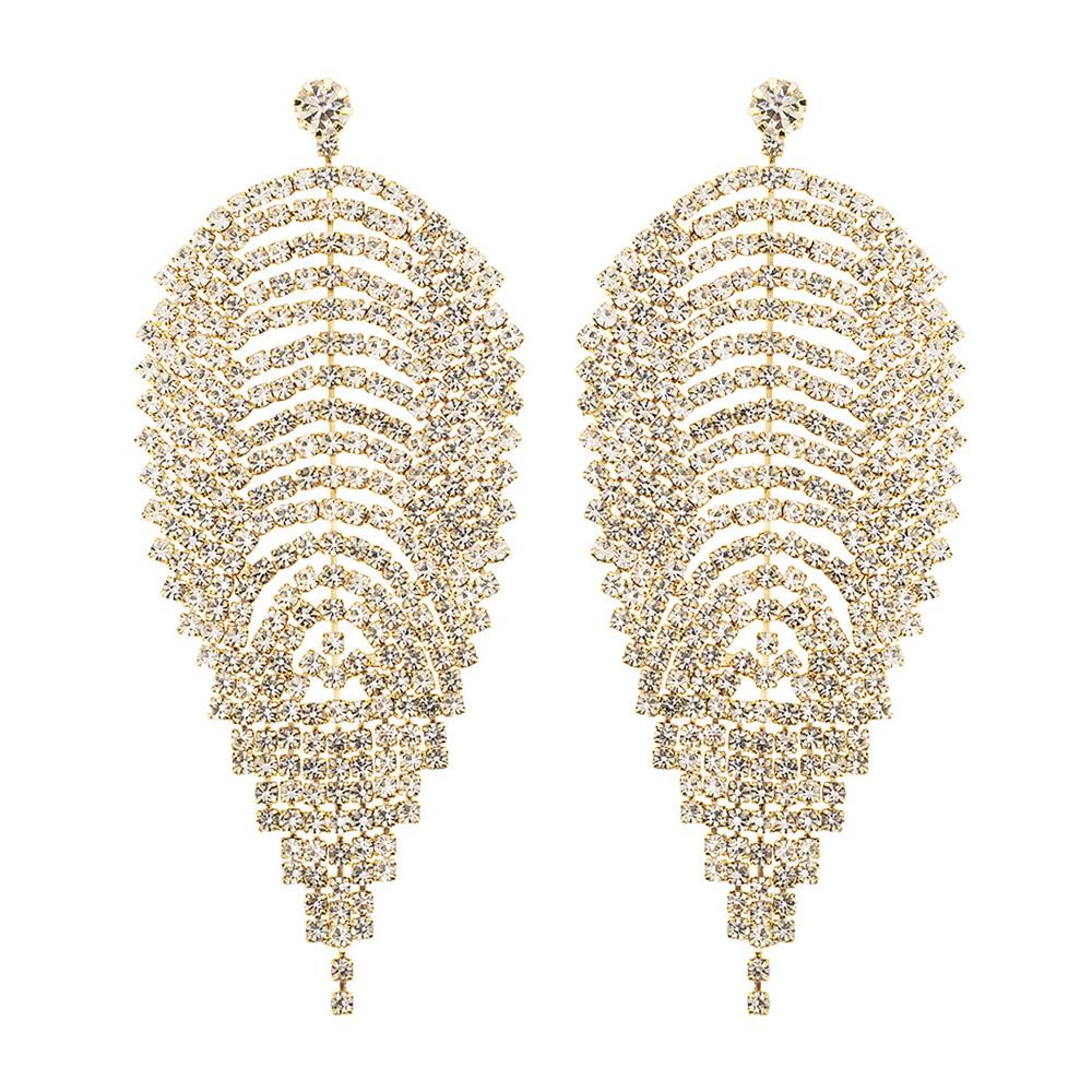 RHINESTONE TASSEL DROP LEAF EARRINGS