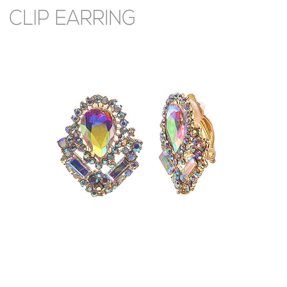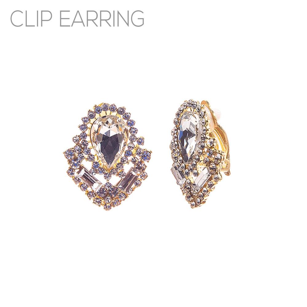 RHINESTONE TEARDROP BAGUETTE CLIP EARRING