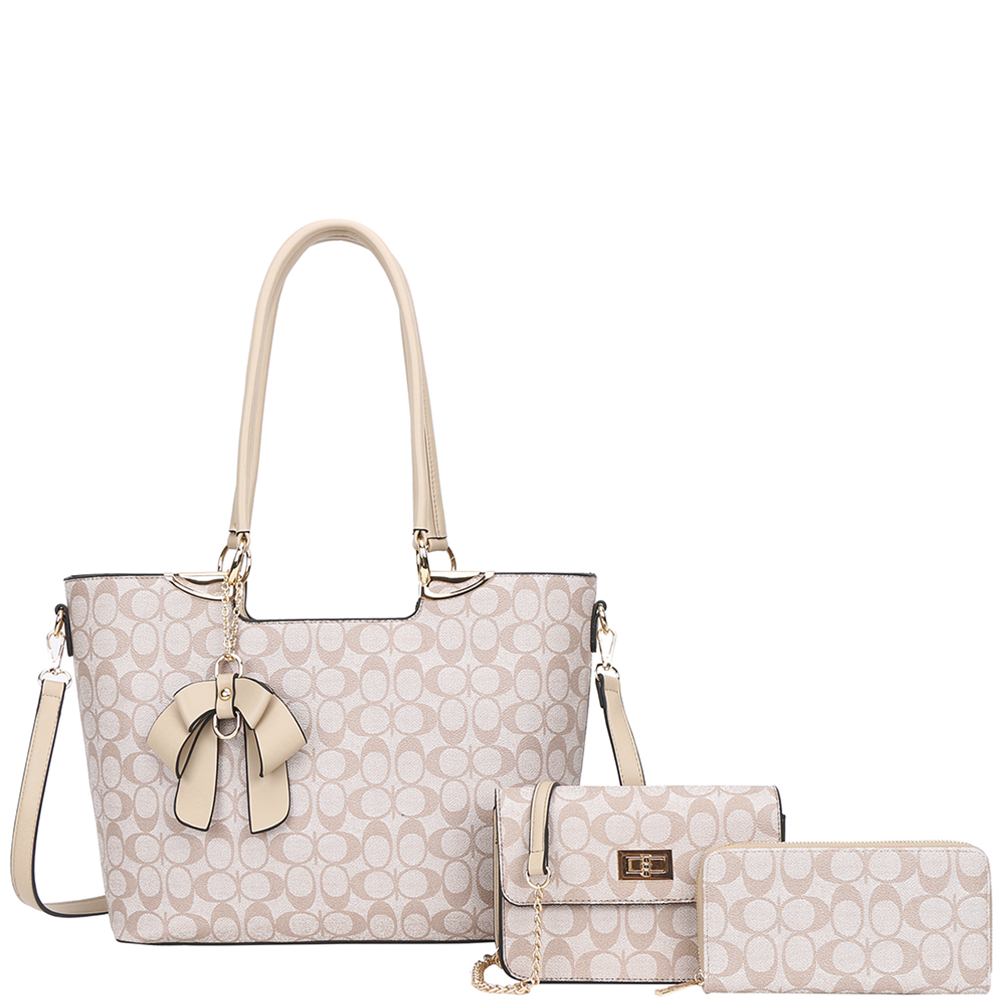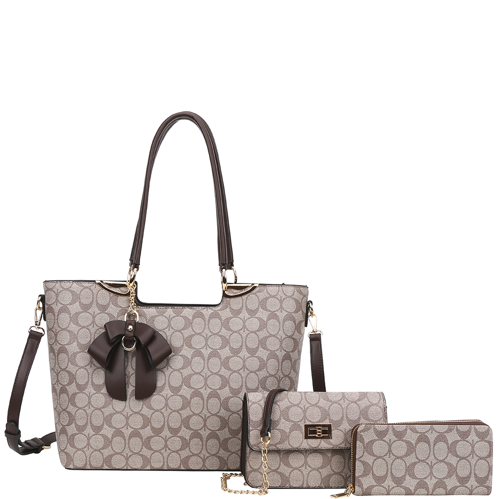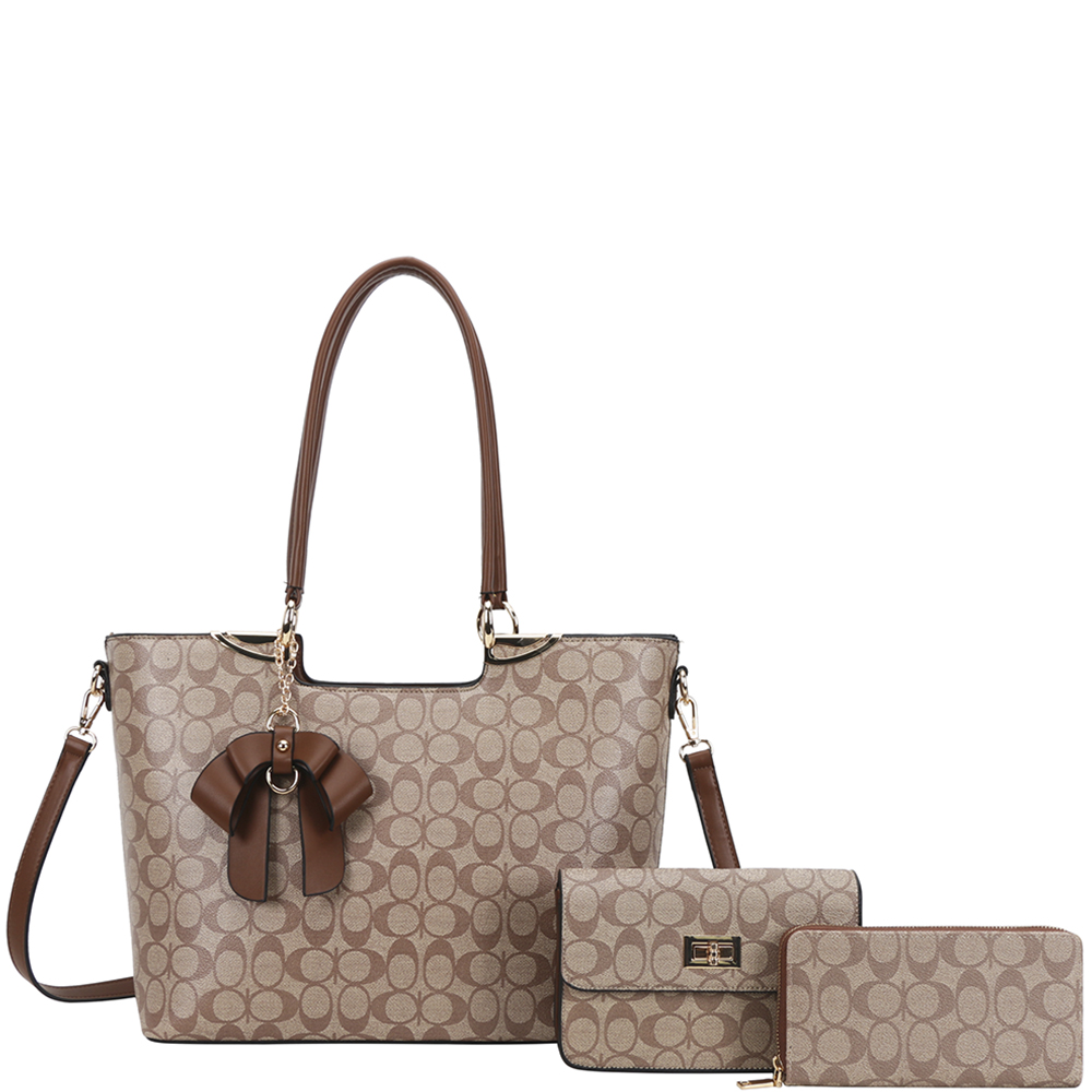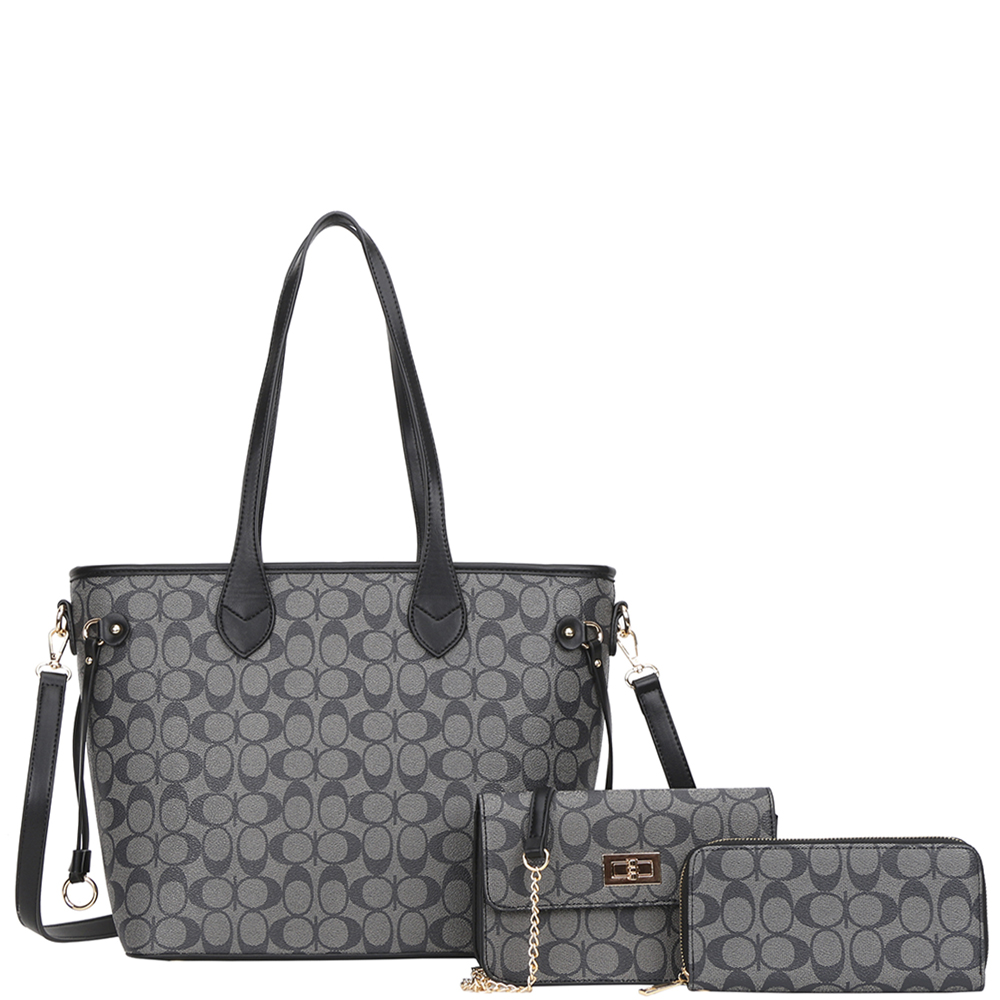 3IN1 OVAL PATTERN PRINT TOTE W CROSSBODY AND WALLET SET
