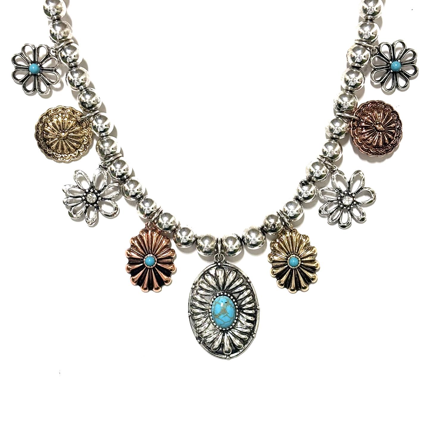 METAL MULTI CHARM STONE STATEMENT NECKLACE