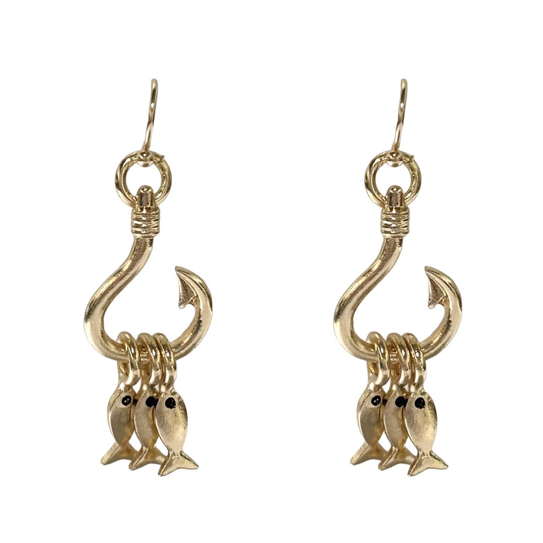 METAL FISHING FISH CHARM DROP EARRING