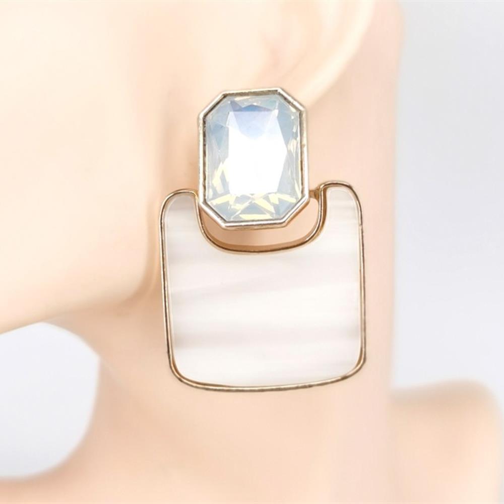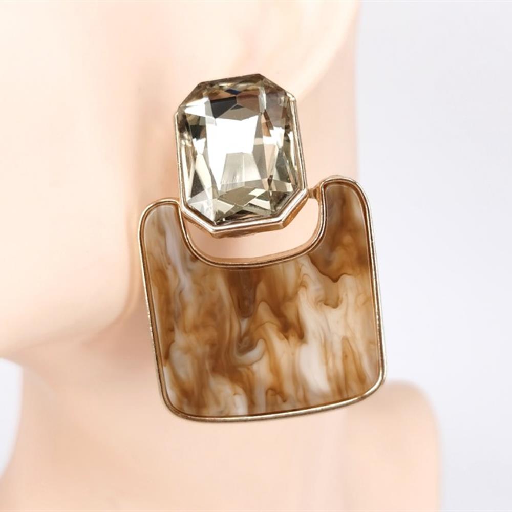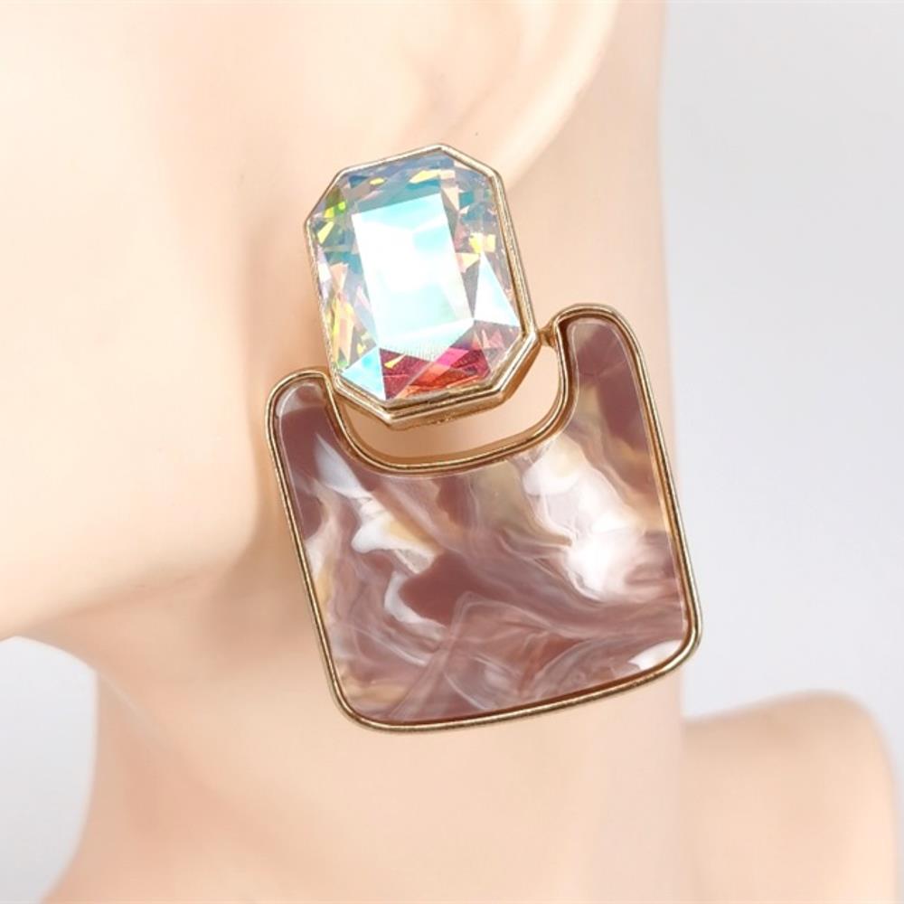 CRYSTAL STONE RESIN RECTANGLE DROP EARRING