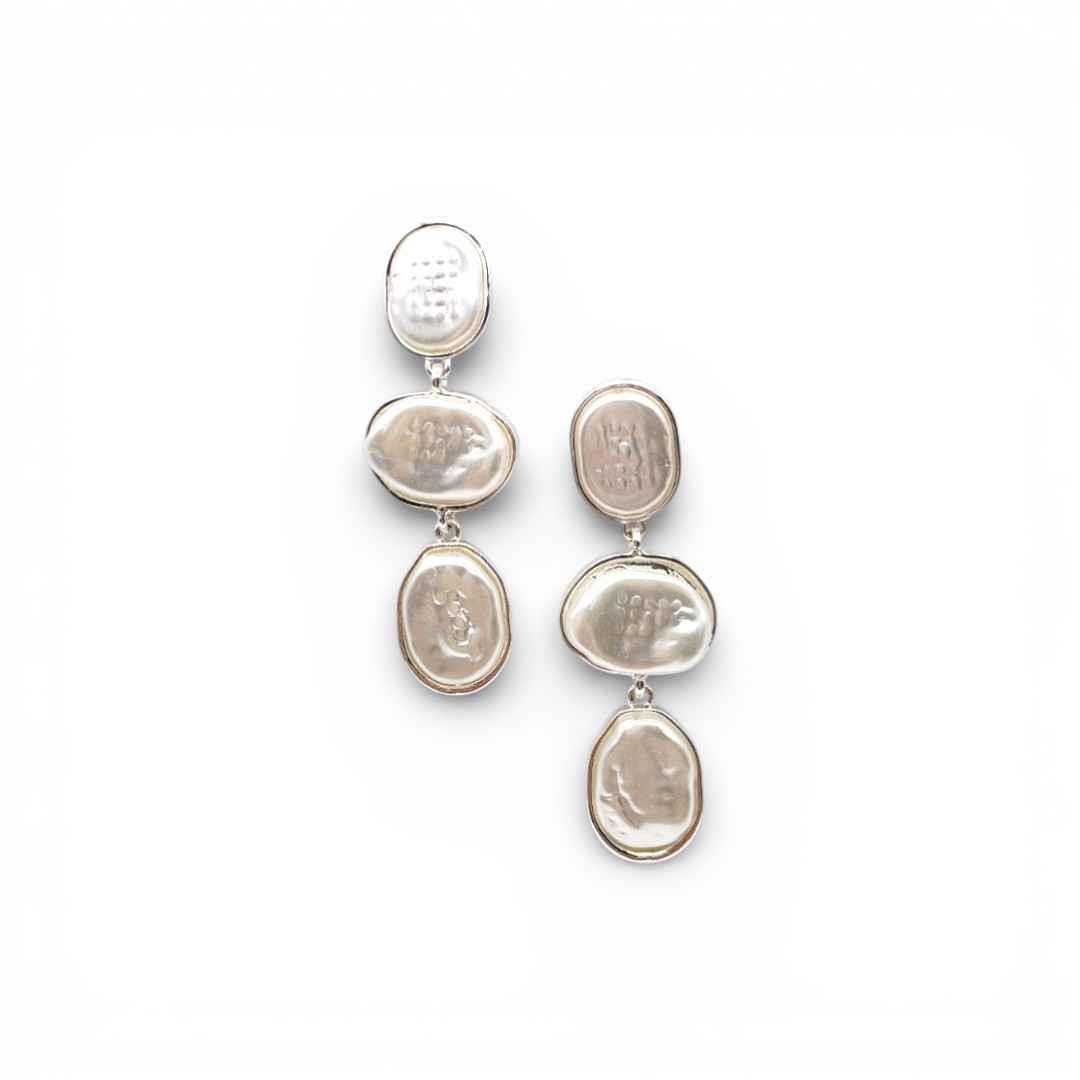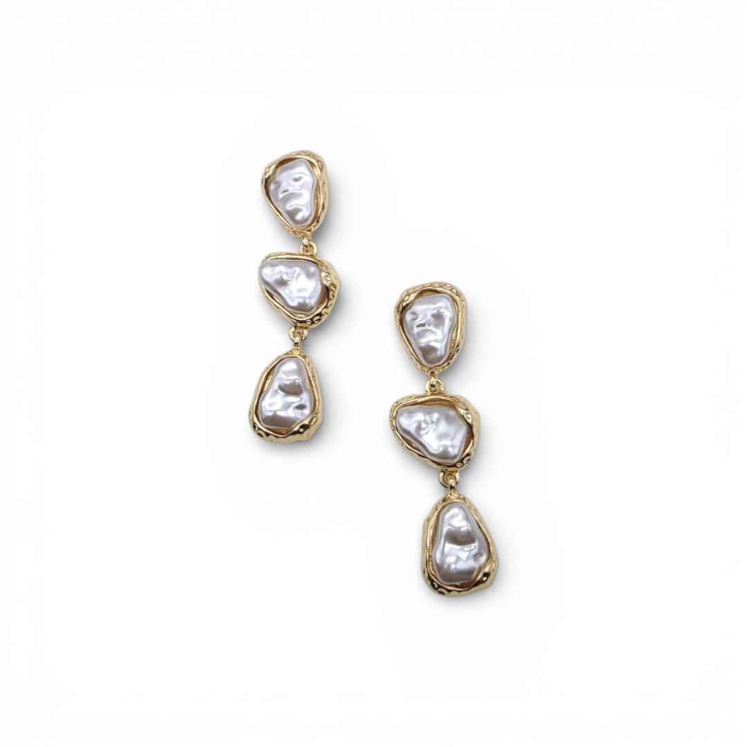 TRIPLE ORGANIC PEARL DROP EARRING