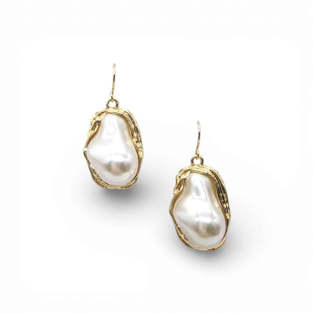 FRAMED ORGANIC BAROQUE PEARL STUD EARRINGS