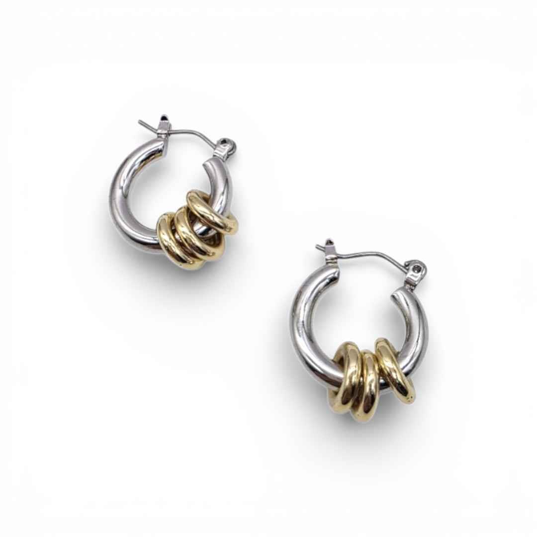 SILVER HOOP TRIPLE GOLD RING DROP EARRING