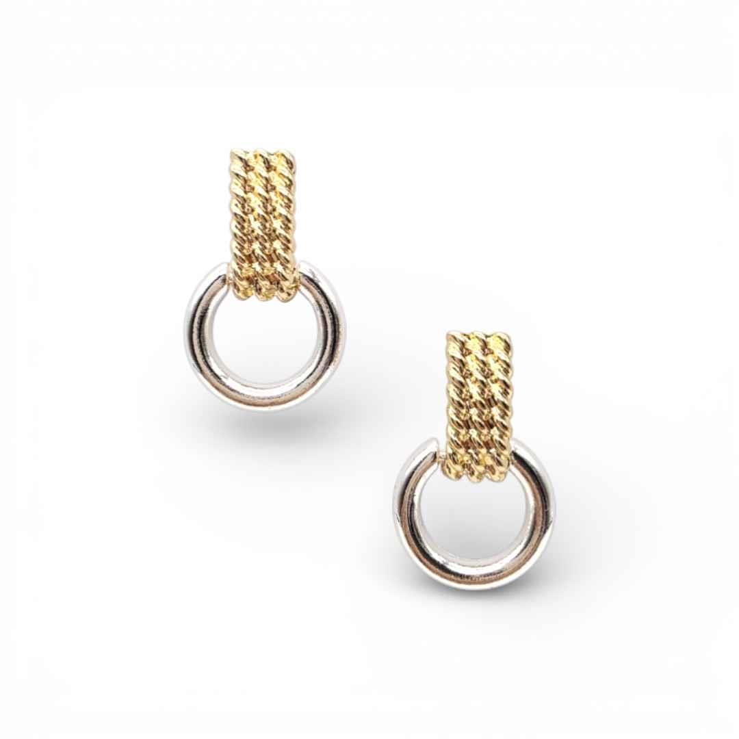 TWO TONE ROPE TEXTURED LINK DROP EARRING