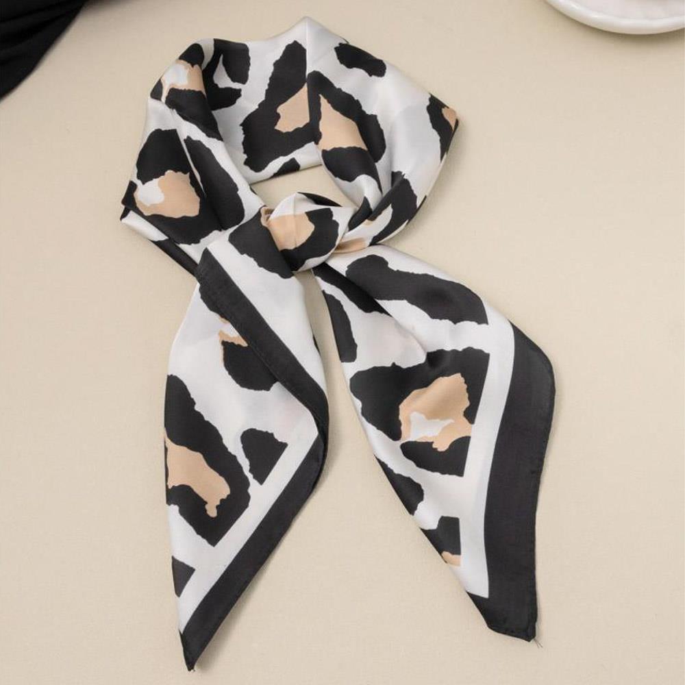 LEOPARD PRINT SILKY SQUARE NECK SCARF