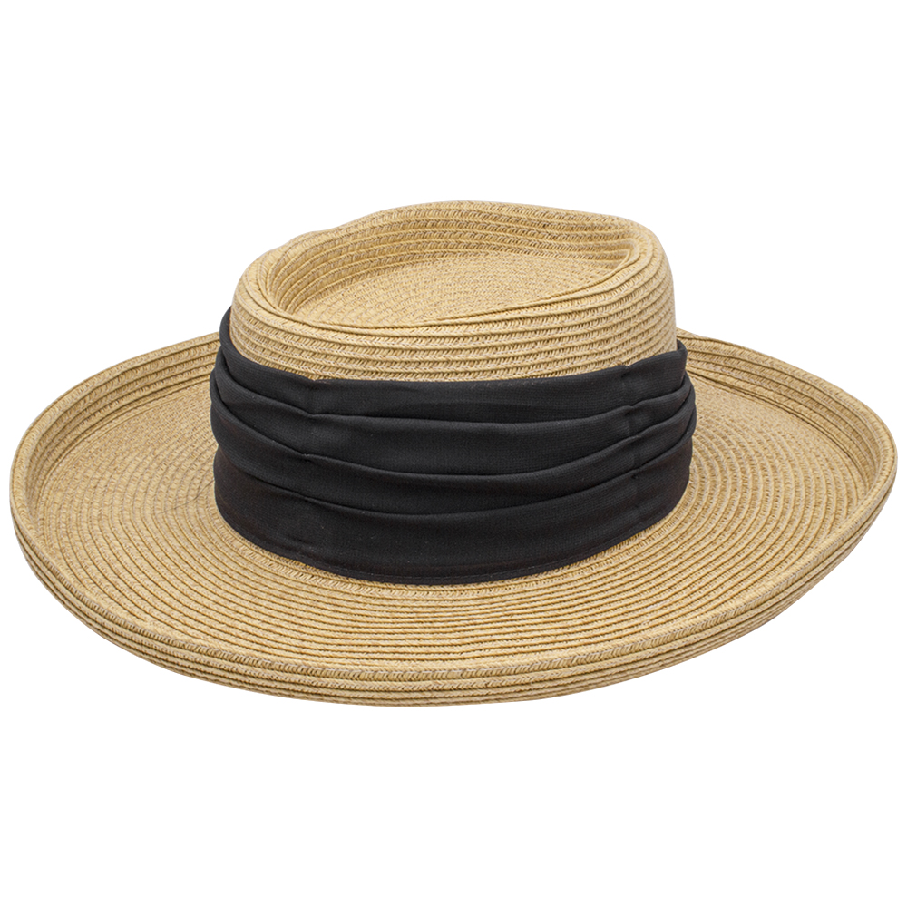 CC RAFFIA SUN HAT WITH STRIPE AND STRAW BAND