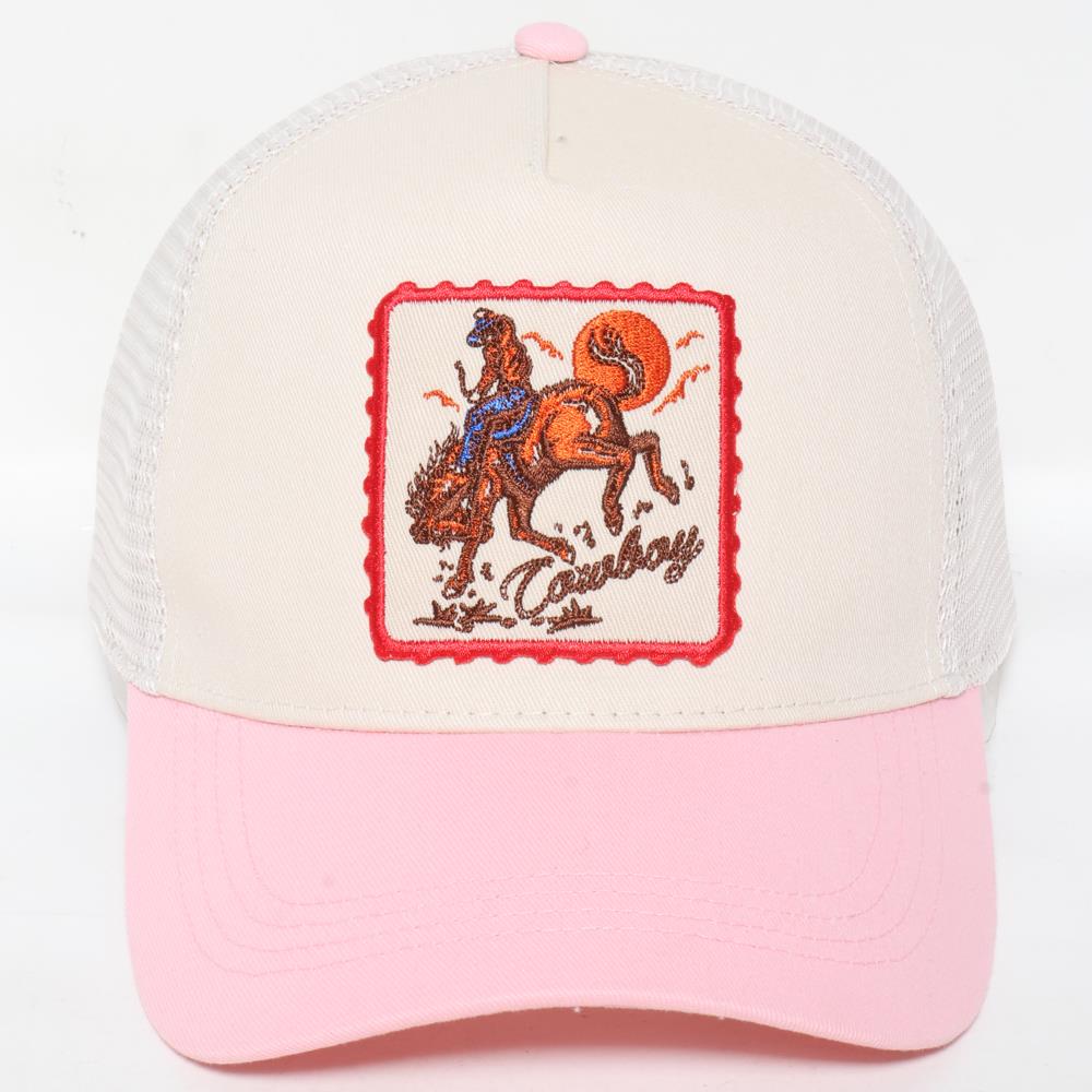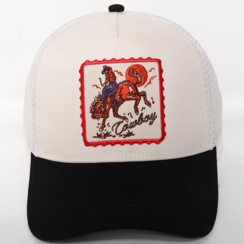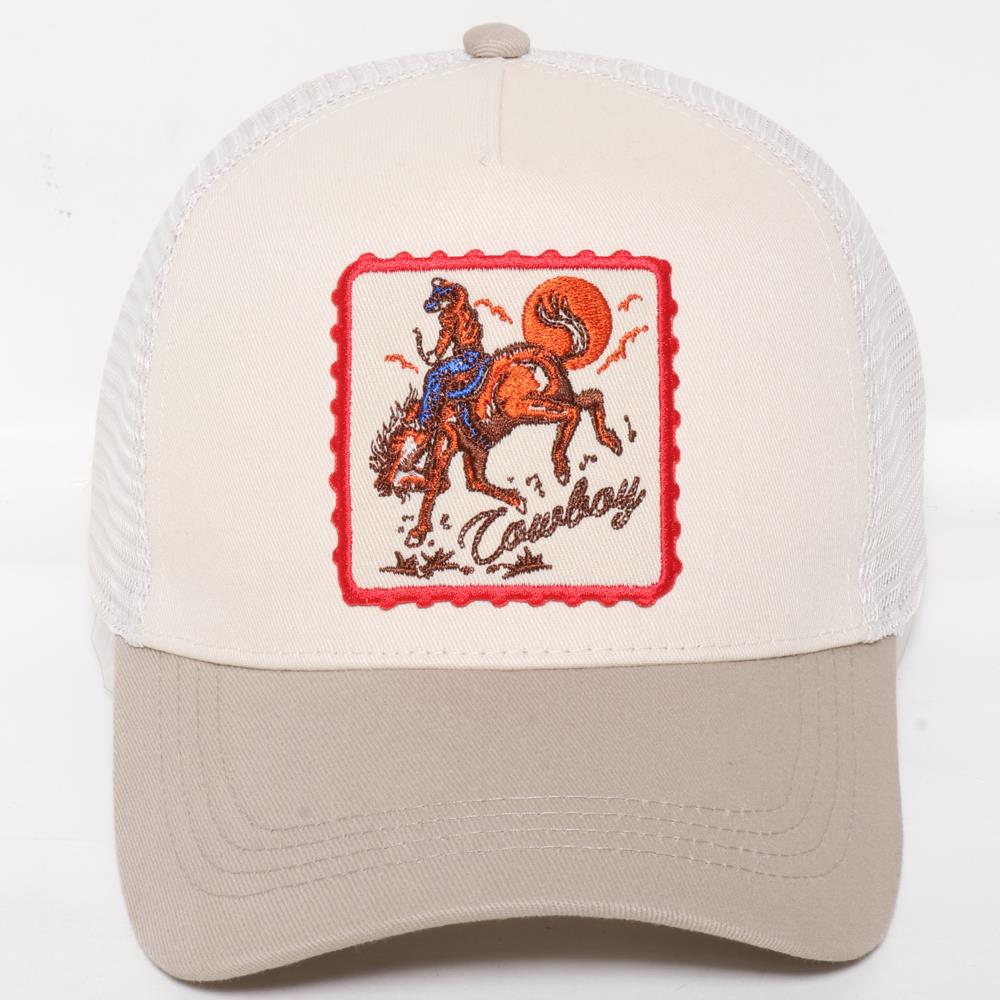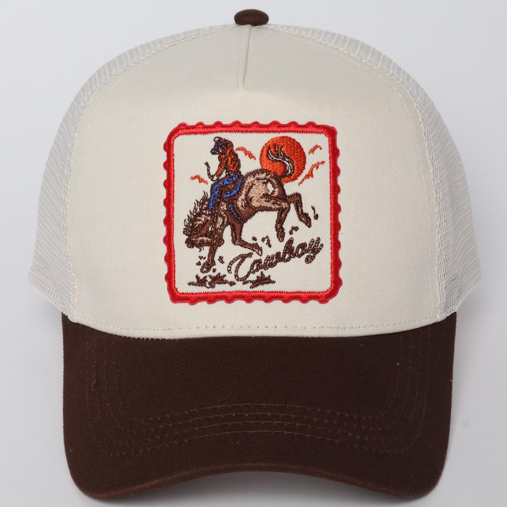 COWBOY EMBROIDERY PATCH TWO TONE MESH BASEBALL CAP
