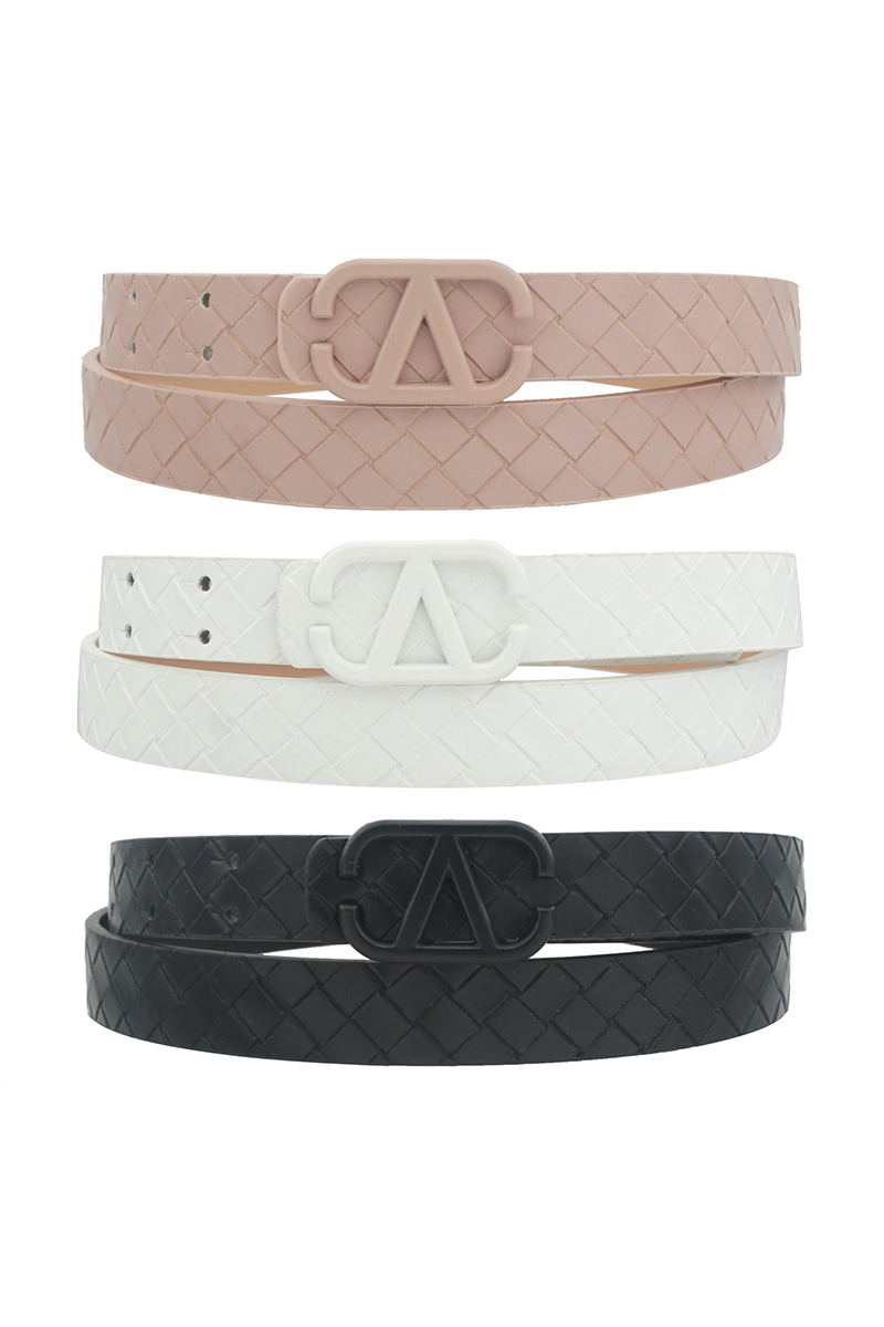 COATED INVERTED V BUCKLE WEAVE TRIO BELT
