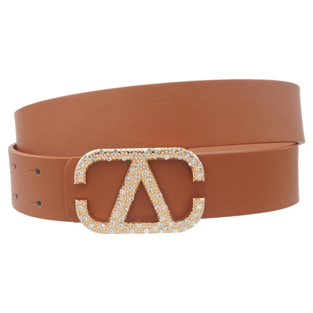 PLUS SIZE PIN & RS PAVE INVERTED V BUCKLE BELT