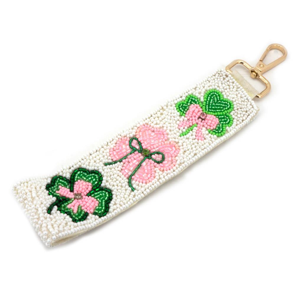 ST PATRICK`S DAY SEED BEAD CLOVER GRAPHIC BAG CHARM KEYCHAIN