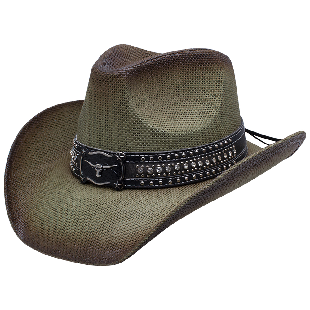 LEATHER STUDDED BAND METAL BUCKLE ACCENT WESTERN STYLE COWBOY HAT