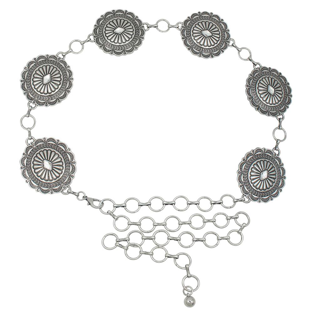 PLUS SW SWIRL RS CIRCLE RECTANGLE CONCHO CHAIN BELT