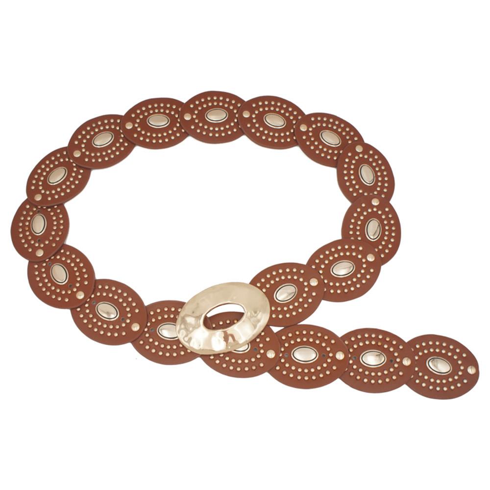 TEXTURED FAUX LEATHER GOLD METAL CIRCLE ORNAMENT EYELET STRETCH BELT