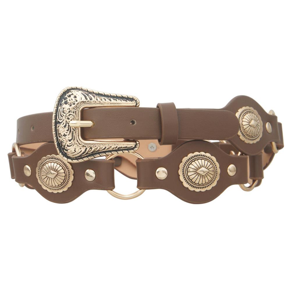 Y2K METAL WESTERN CONCHO EMBOSSED CIRCLE BELT