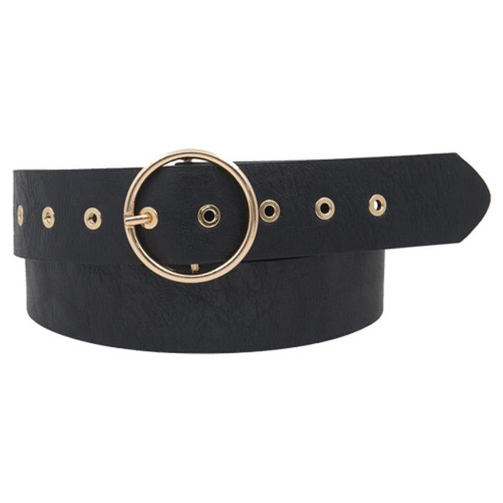 DOUBLE CIRCLE META BUCKLE PU LEATHER BELT