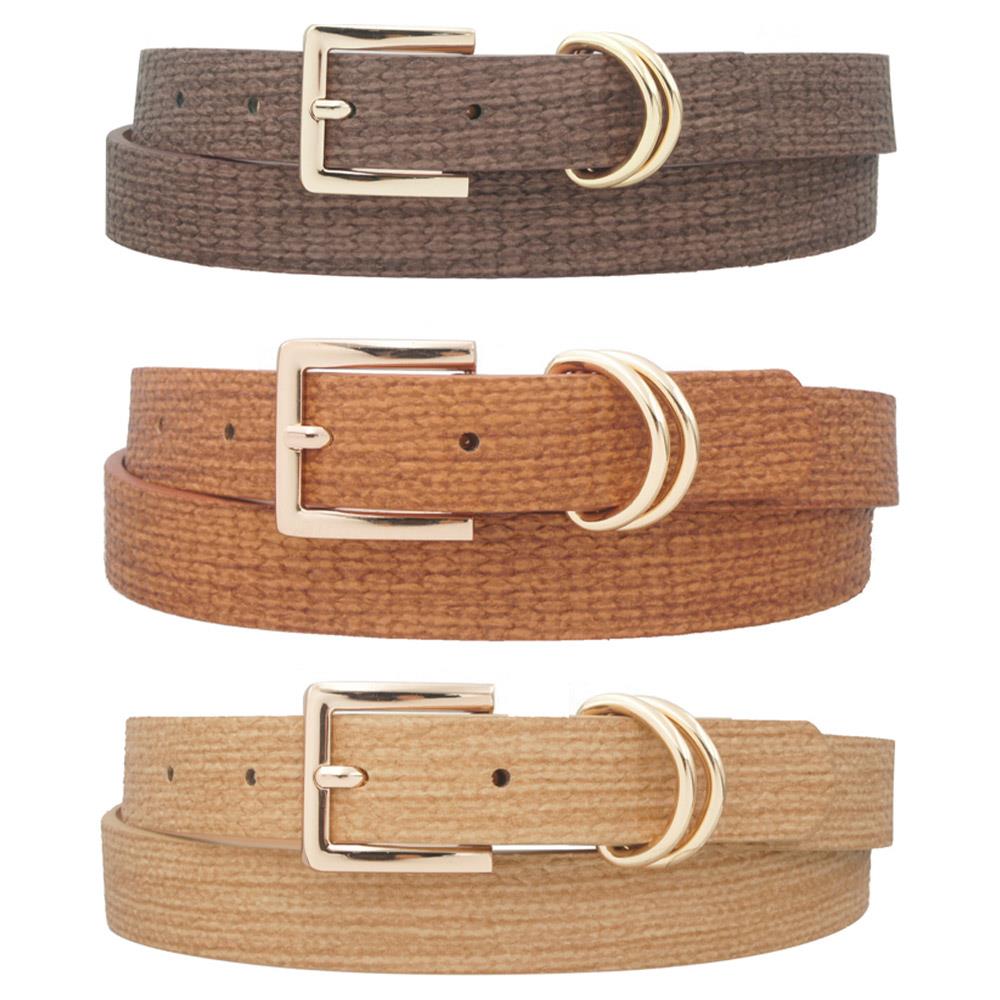 TEXTURED BUCKLE SKINNY BELT 3 PC SET