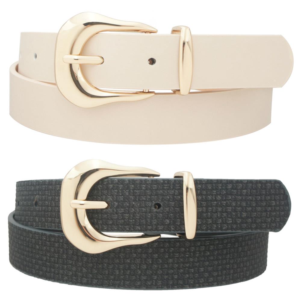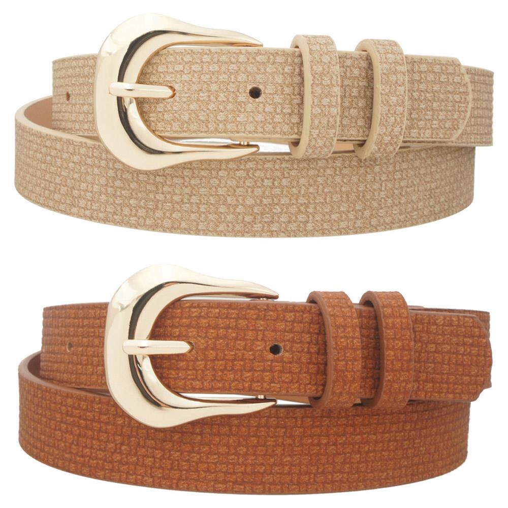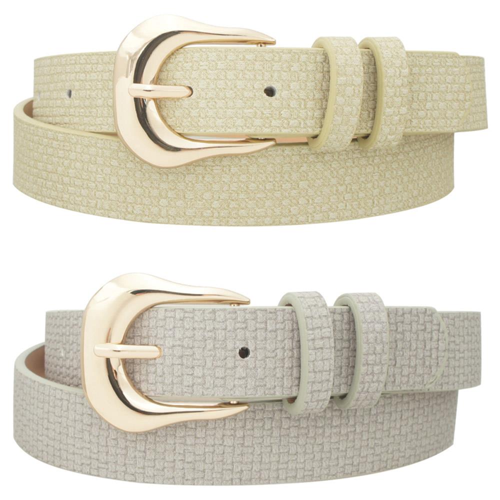 BASKET WEAVE & SOLID METAL LOOP DUO BELT