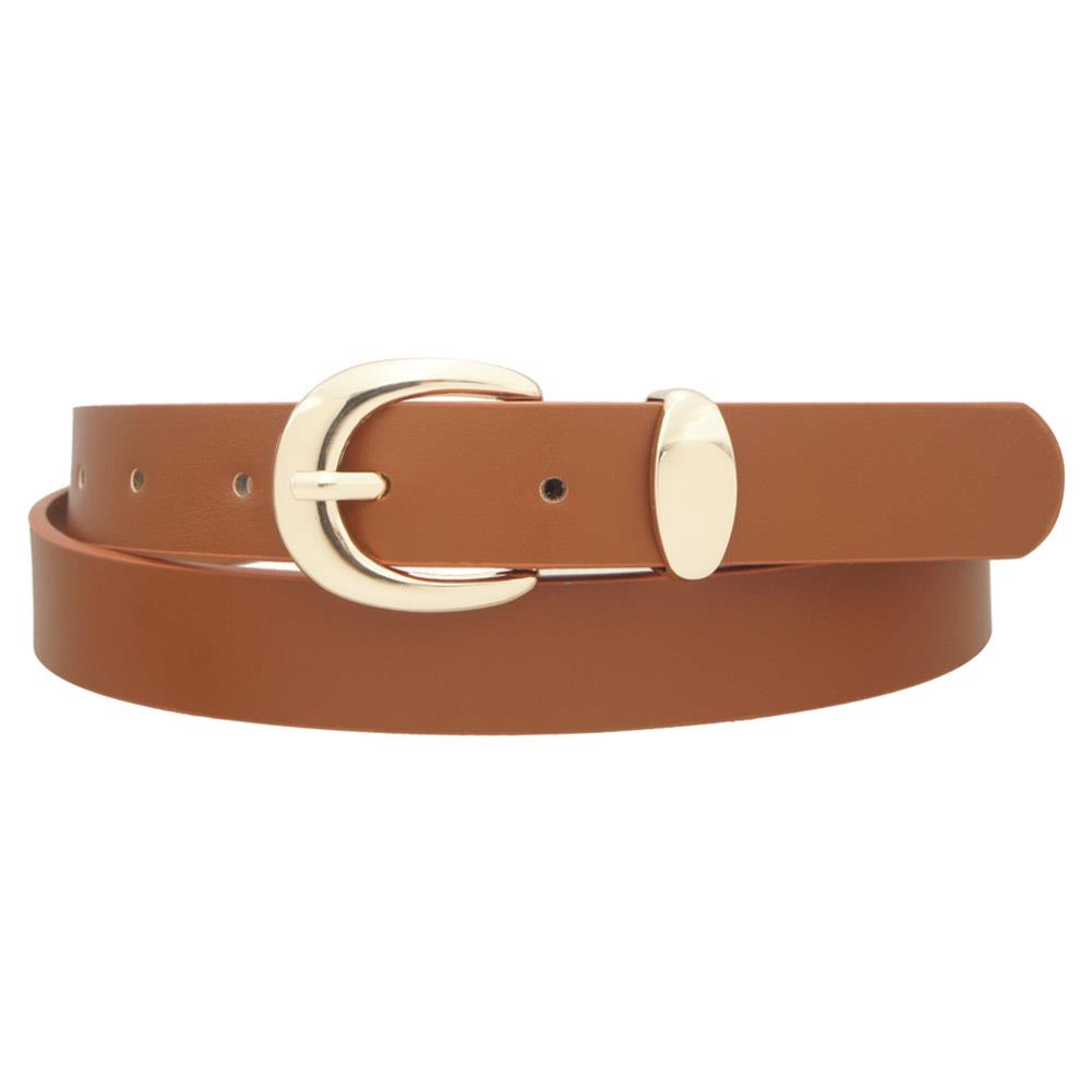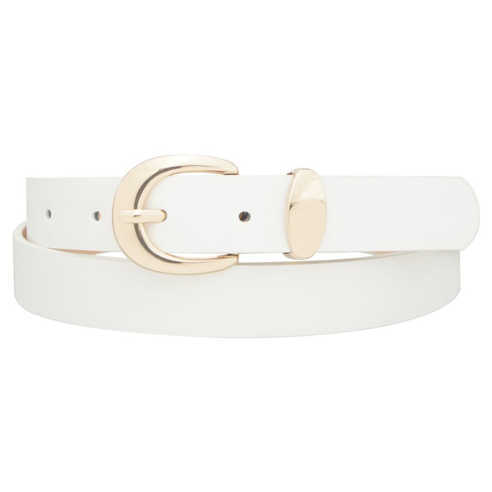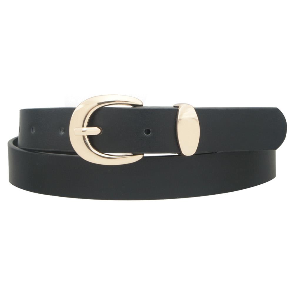 FAUX LEATHER THIN BELT GOLD BIT BUCKLE
