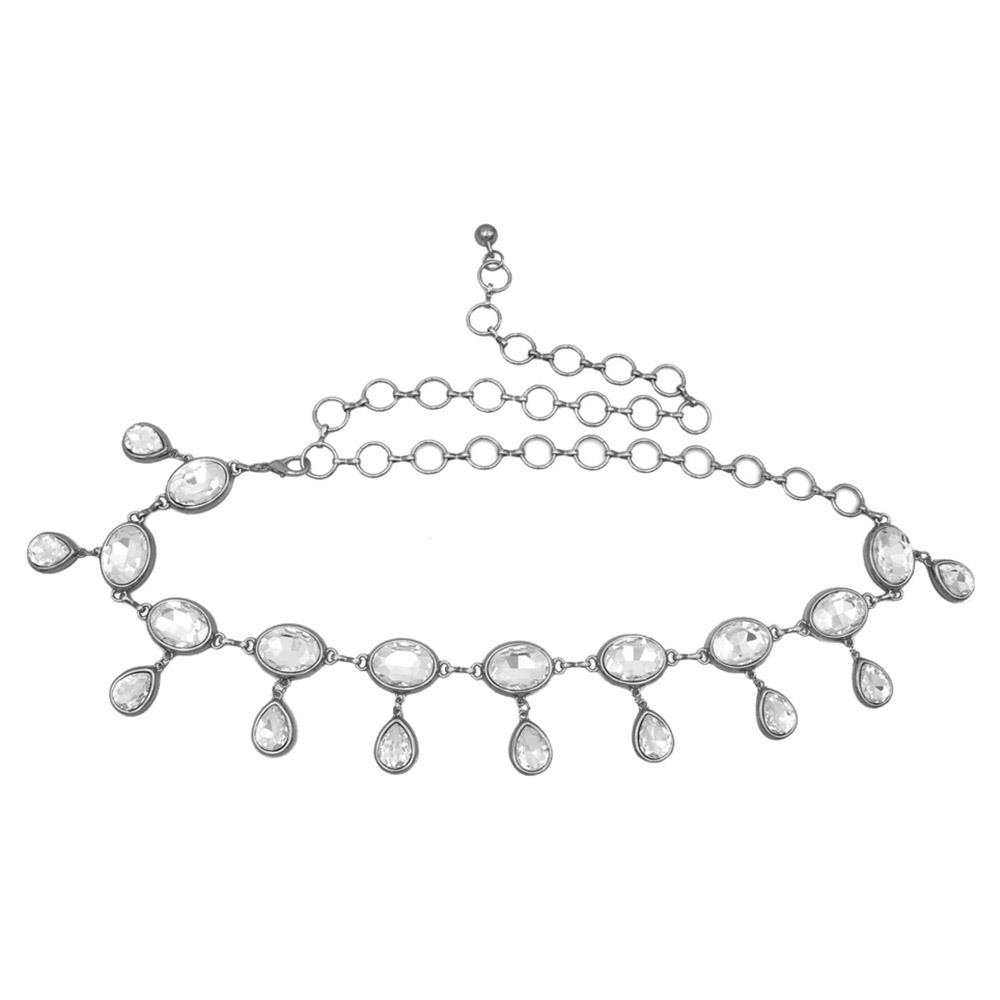 RHINESTONE METAL FLOWER STATION CHAIN BELT