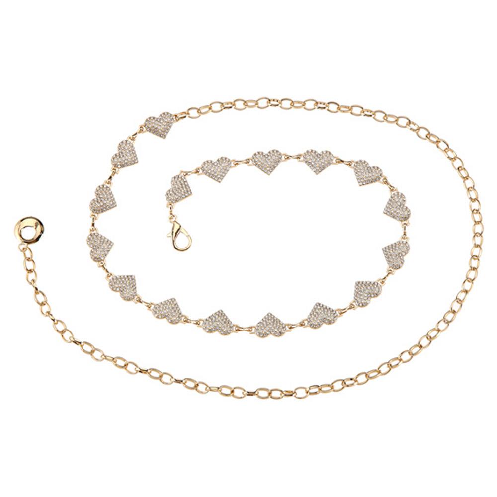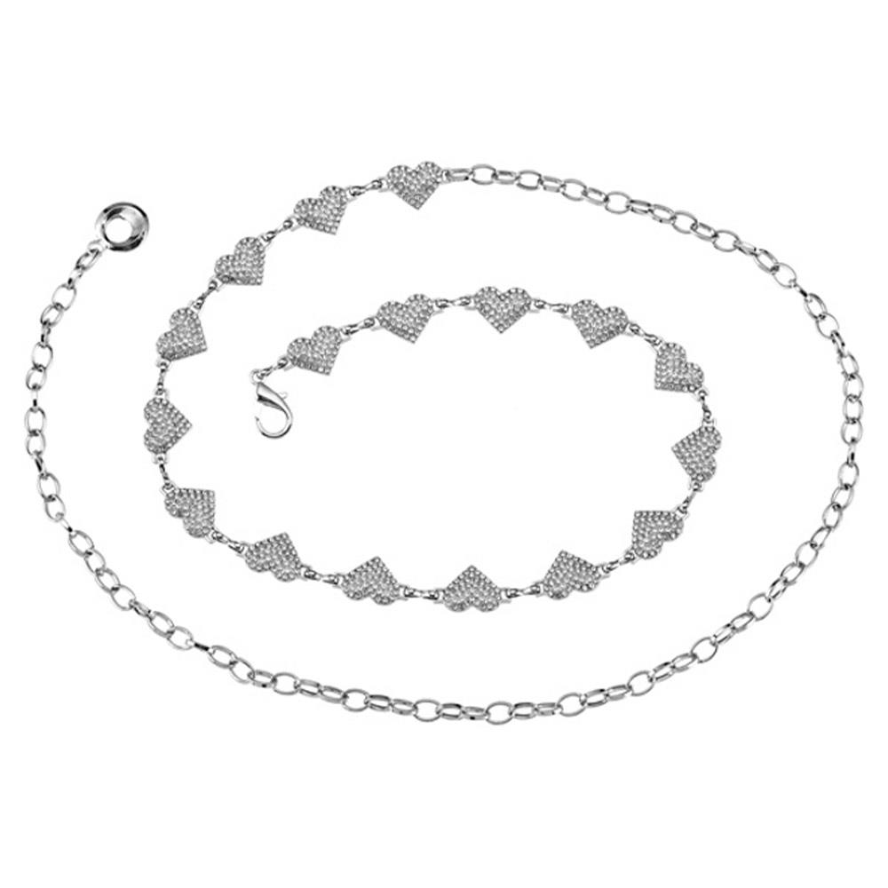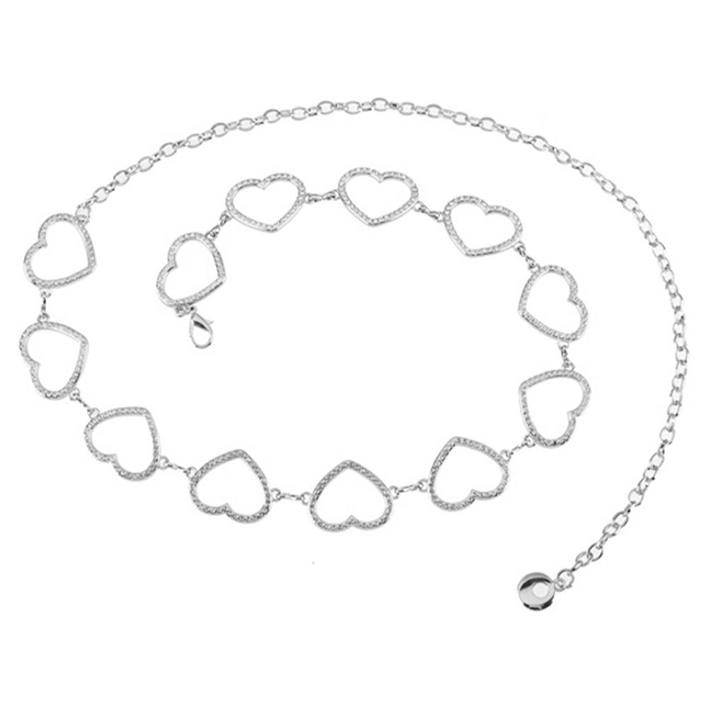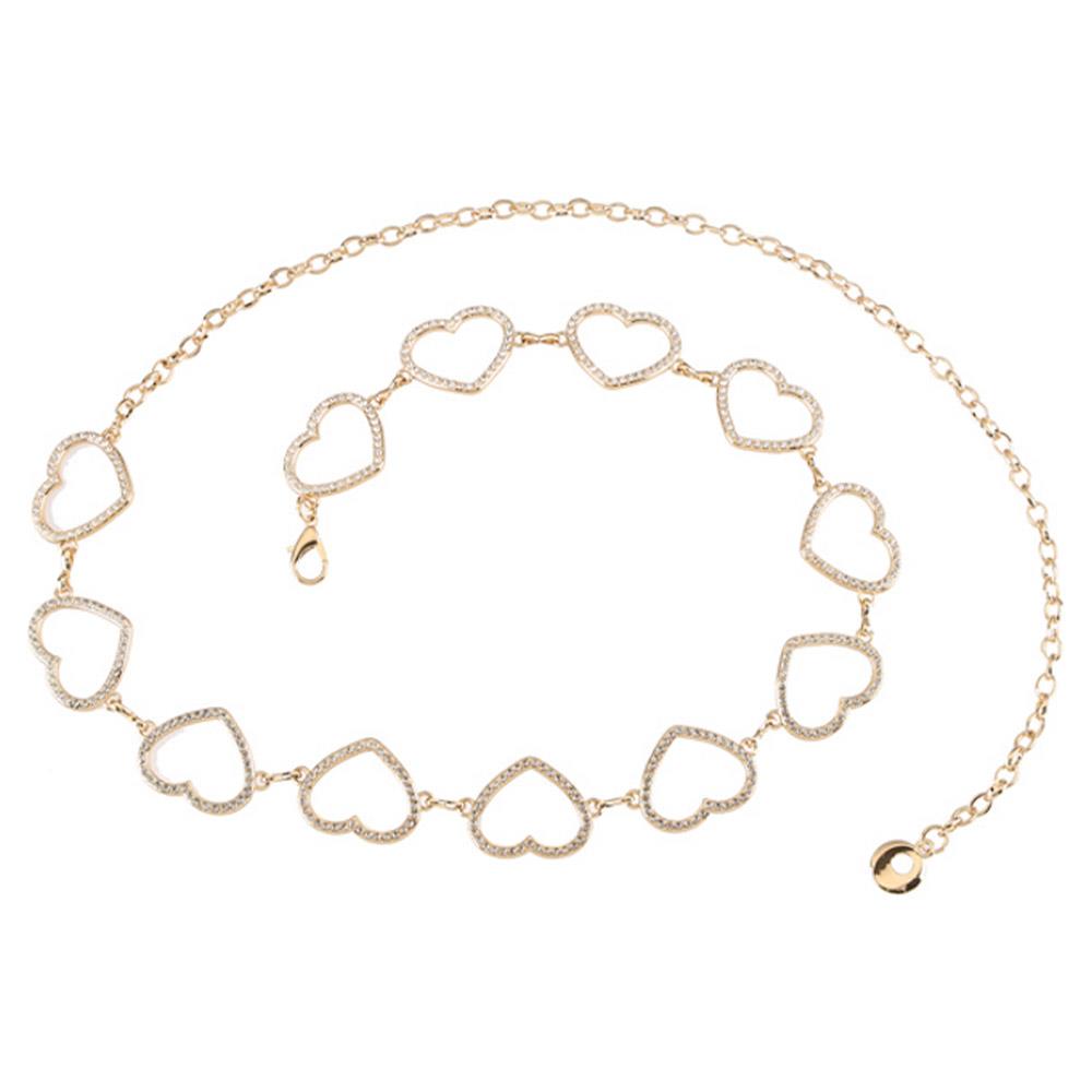 METAL RHINESTONE HEART LINK CHAIN BELT