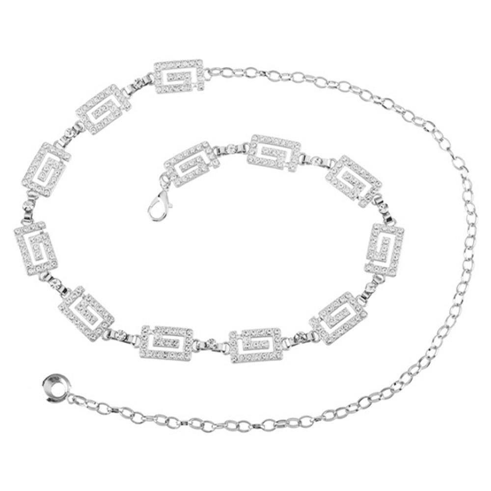 RHINESTONE GREEK KEY RECTANGLE LINK CHAIN BELT