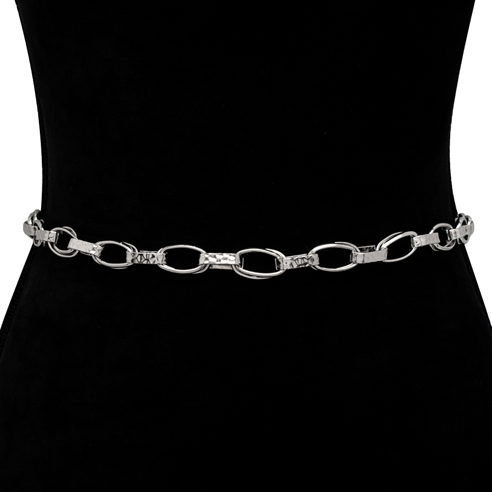 TRIPE TEXTURED METAL ROUND CHAIN LINK HOOK BELT