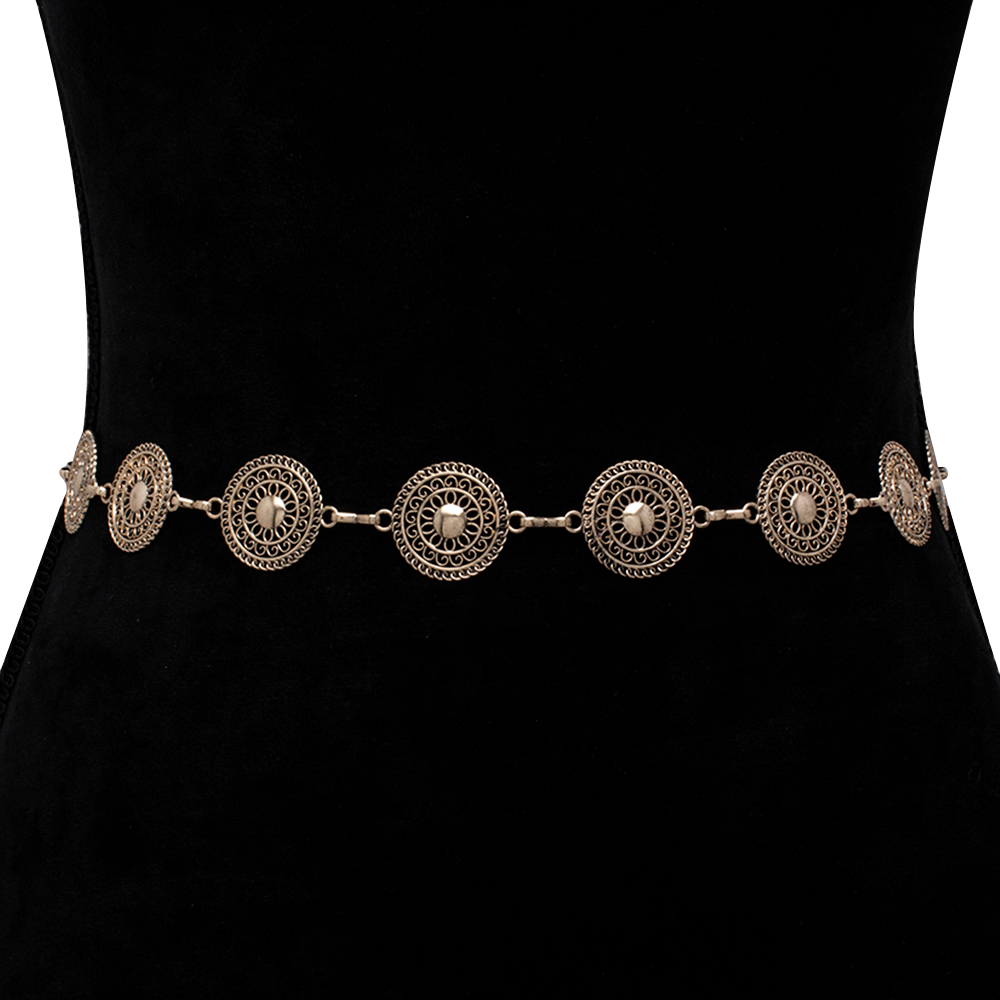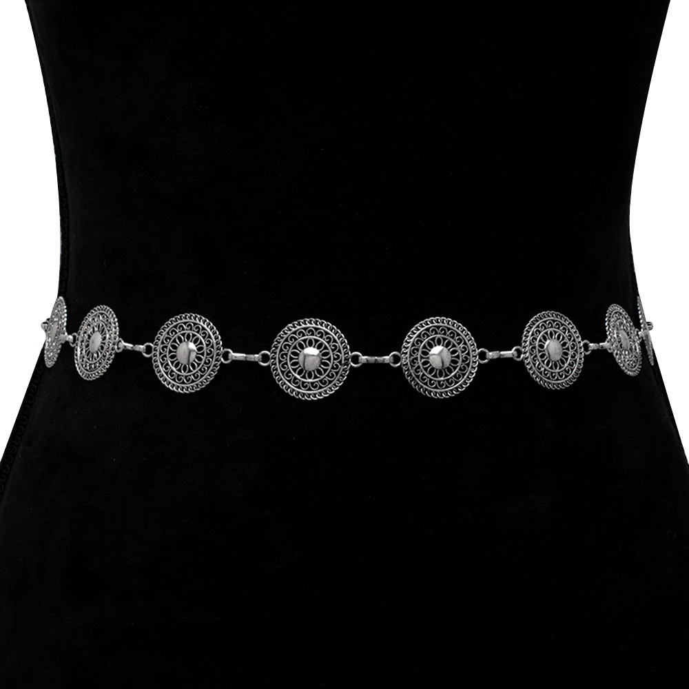METAL ENGRAVED ROUND CONCHO CHAIN BELT
