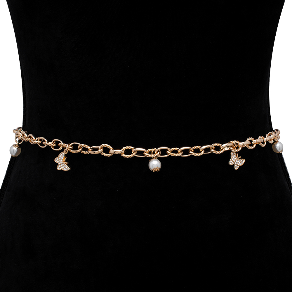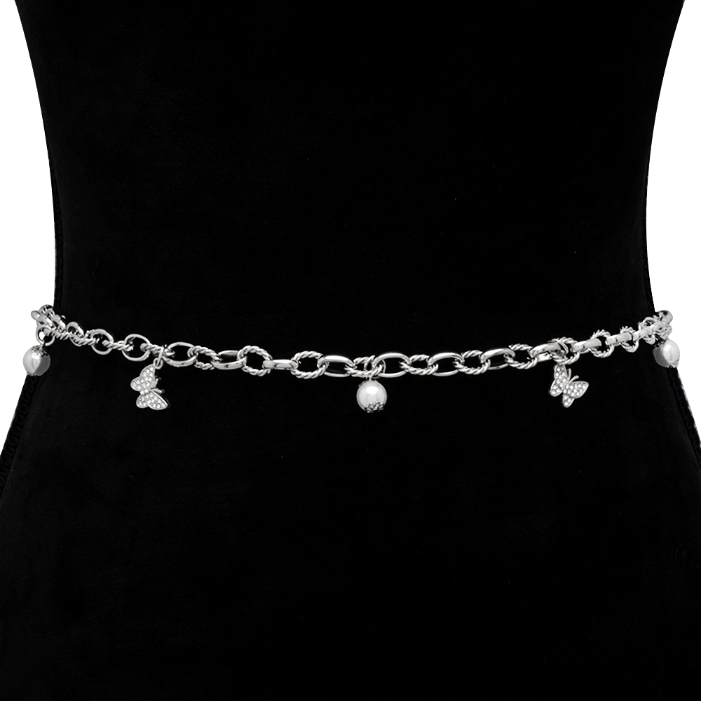 RHINESTONE BUTTERFLY PEARL CHARM CHAIN LINK HOOK BELT