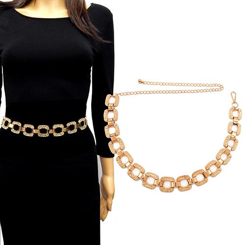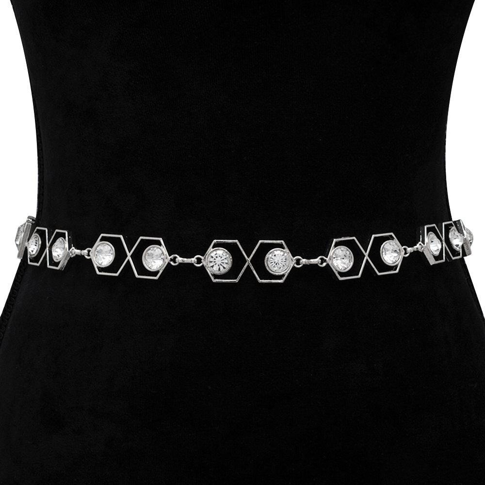 GEOMETRIC SHAPE CRYSTAL DESIGN LINK HOOK BELT