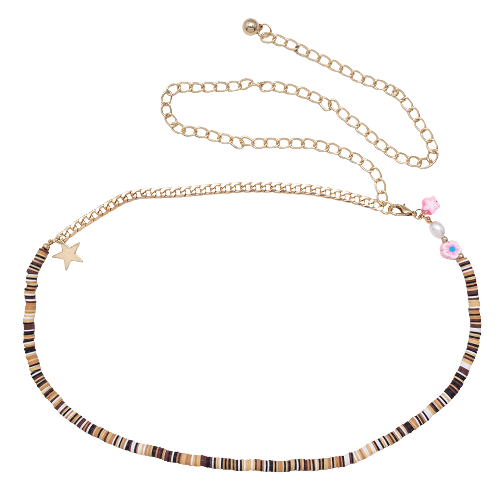COLORED DISC BEAD CHARM CHAIN LINK HOOK BELT