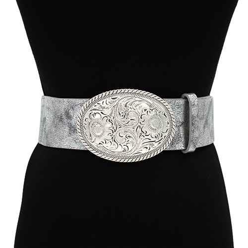 ENGRAVED ROUND WESTERN BUCKLE LEATHER ELASTIC BELT