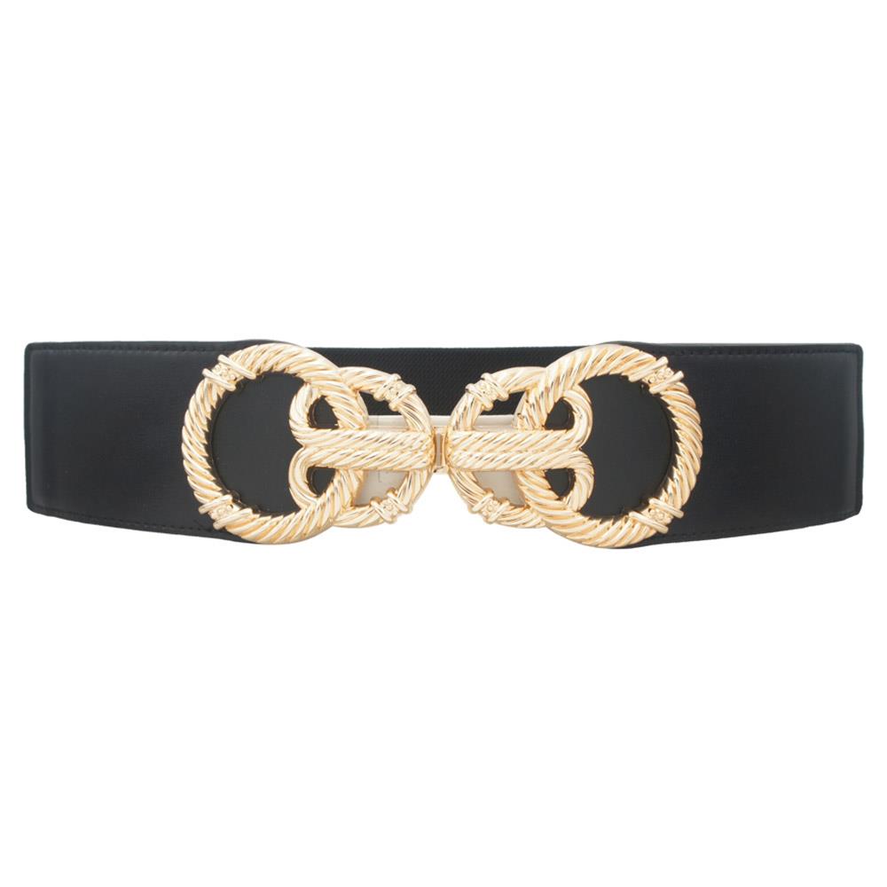 WIDE ELASTIC WAIST BELT WITH GOLD BUCKLE