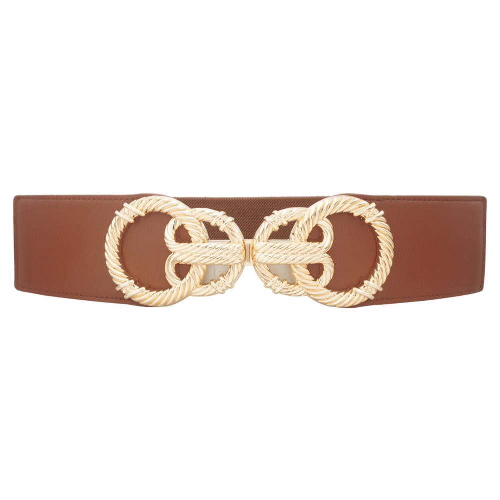 TEXTURED ELASTIC BELT WITH GOLD TWIST BUCKLE