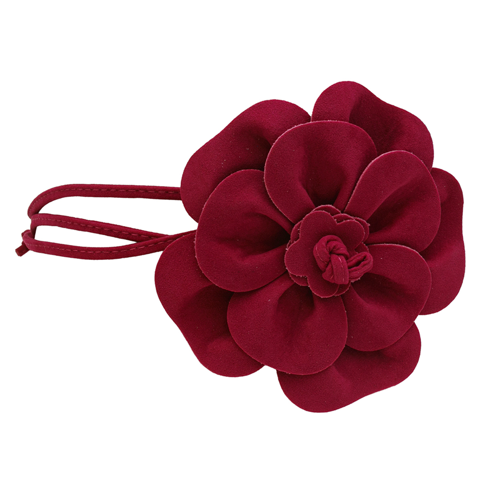OVAL BUCKLE ZIG ZAG STITCH FLORAL STRAP FAUX SUEDE BELT