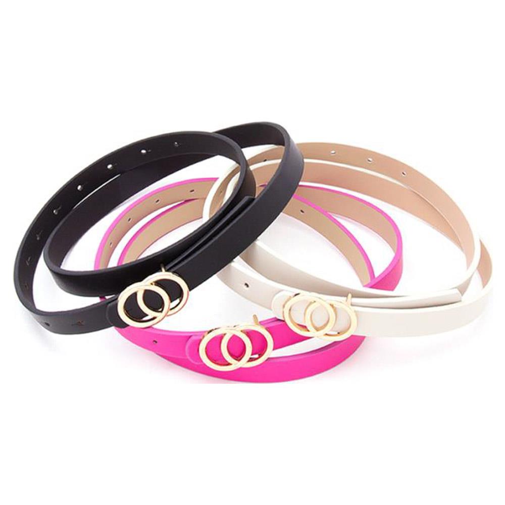 2 PU 1 RHINESTONE STRAP BUCKLE TRIO SKINNY BELT