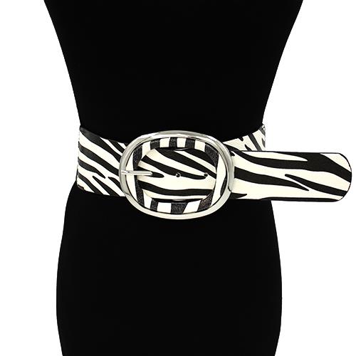 ETCHED OUTLINE FAUX COW HAIR WESTERN BELT