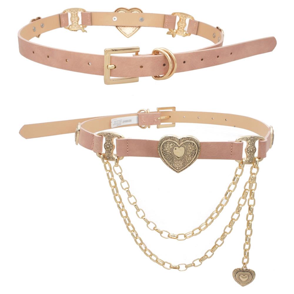 GOLDEN HEART CHARM LAYER CHAIN WESTERN BELT