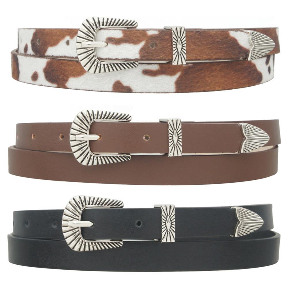 RIBBED WESTERN COW SKINNY TRIO BELT