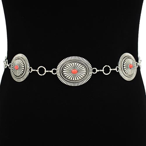 METAL LINK OVAL CONCHO ENGRAVED STONE WESTERN CHAIN BELT