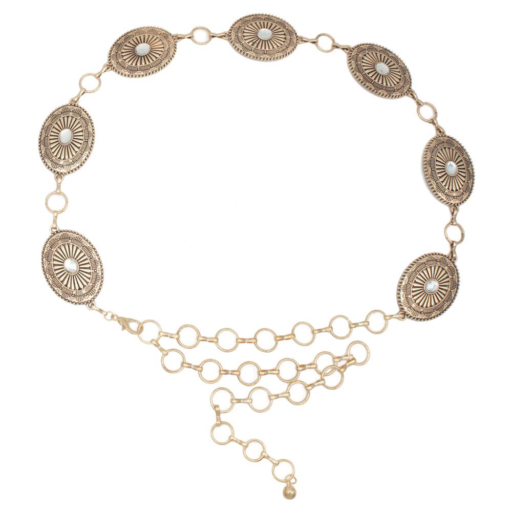 SOUTHWESTERN OVAL FLORETTE CONCHO CHAIN BELT