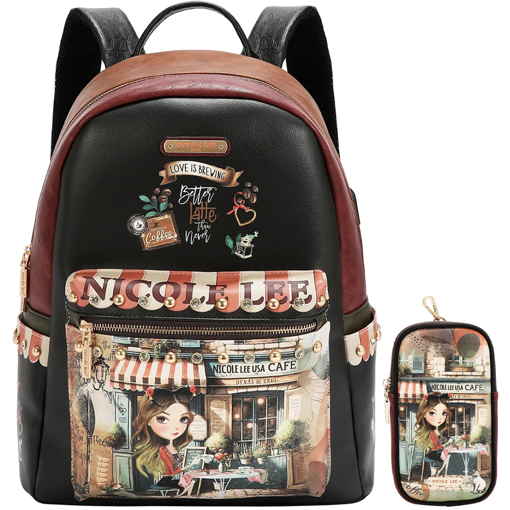 NICOLE LEE LARGE USB FASHION BACKPACK WITH CHARGING PORT AND POUCH