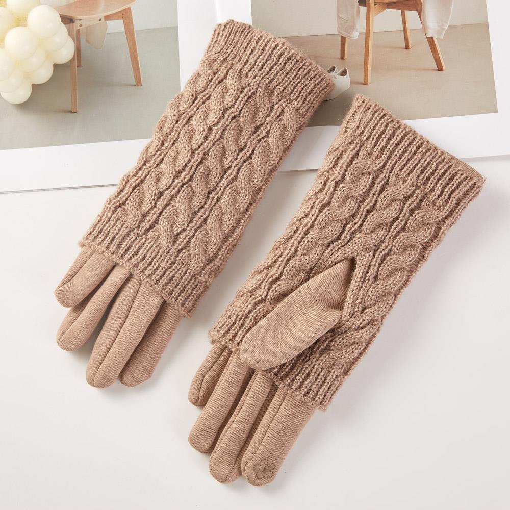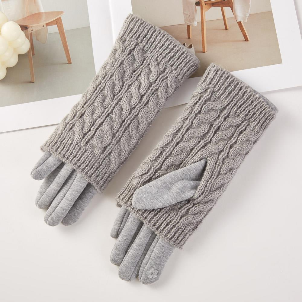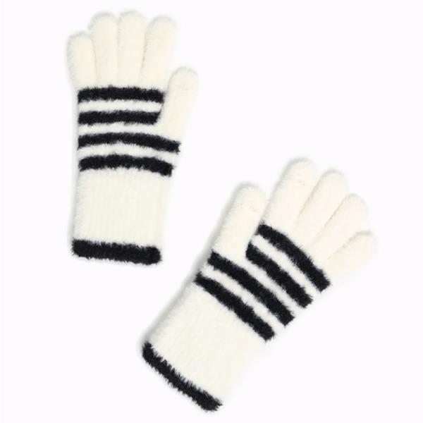 TWO TONES SOFT FUZZY KNIT SMART TOUCH GLOVES
