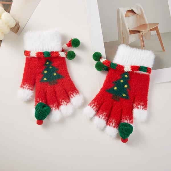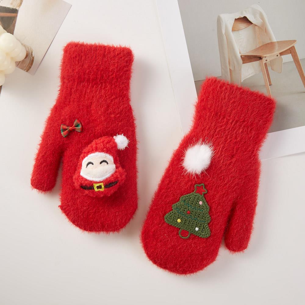 CHRISTMAS SANTA TREE FUZZY MITTEN GLOVES
