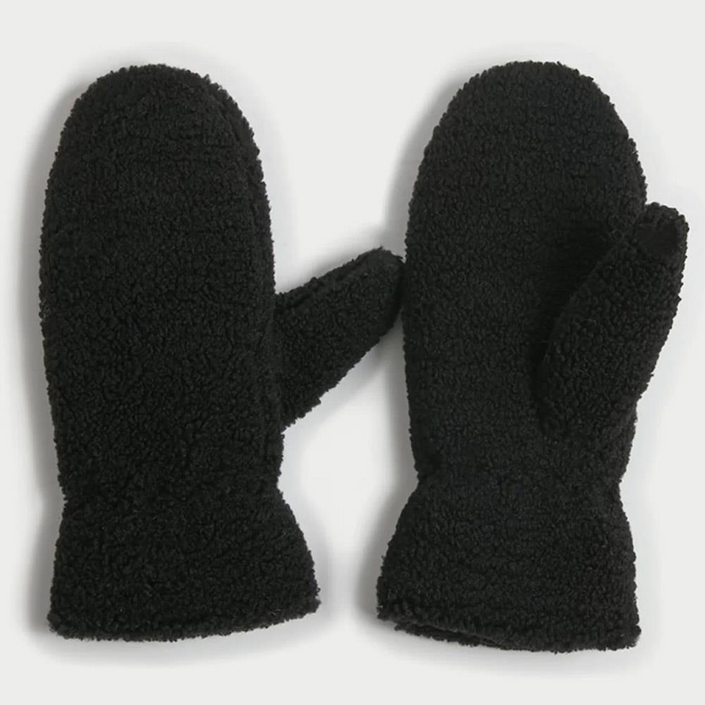 PLUSH CUFF FAUX LEATHER MITTEN GLOVES