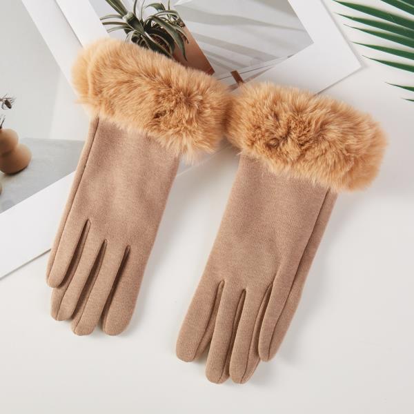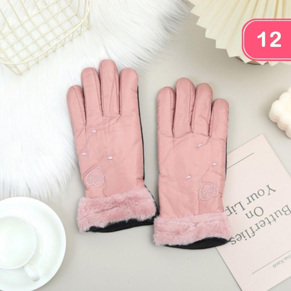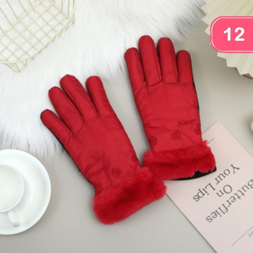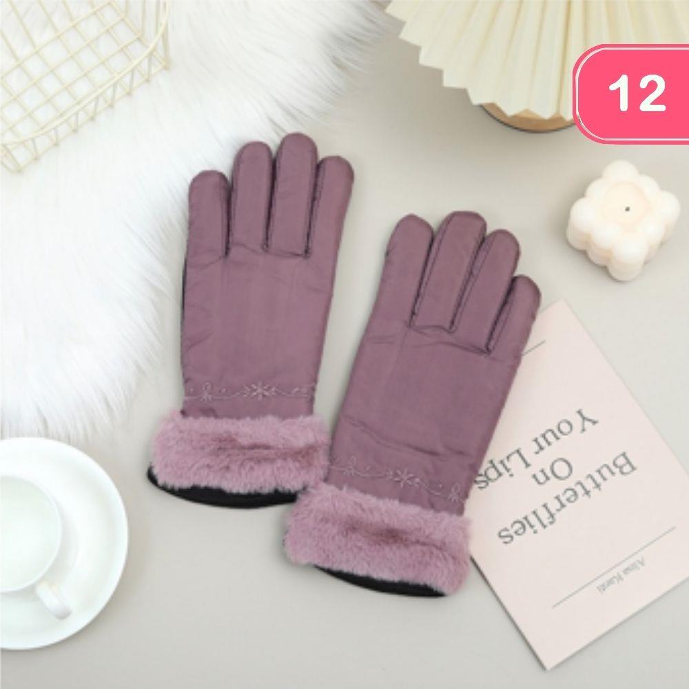 SOFT TOUCH WINTER GLOVES WITH FUR-LINED CUFF DETAIL (12 UNITS)